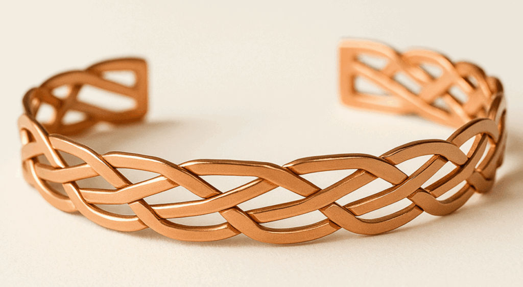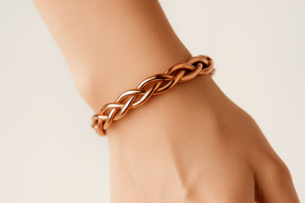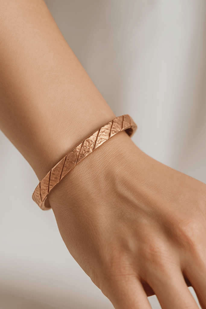 Każda bransoletka powstaje w pełni ręcznie — od surowej miedzi, przez kształtowanie, po nadawanie struktury i końcowe wykończenie.