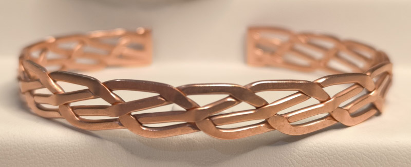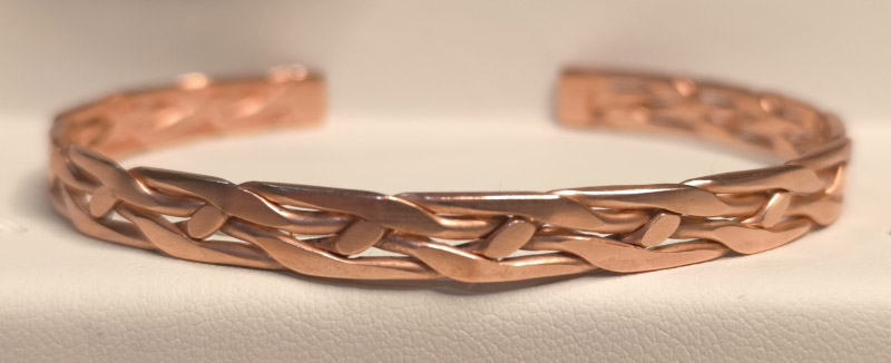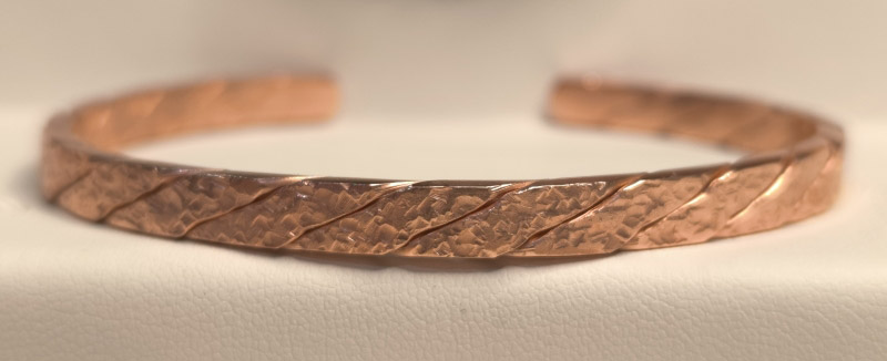Każda bransoletka powstaje w pełni ręcznie — od surowej miedzi, przez kształtowanie, po nadawanie struktury i końcowe wykończenie.